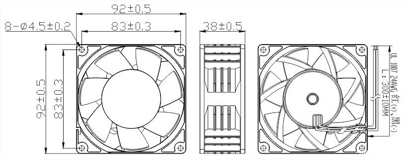 直流轴流ky体育app官方9238安装尺寸图纸: