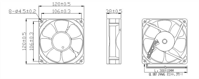 直流轴流ky体育app官方12038安装尺寸图纸: